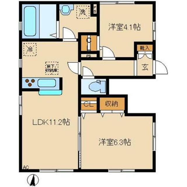 | 間取り | 2LDK(LDK11.2洋室6.3洋室4.1) | 主要採光面 | 南 |